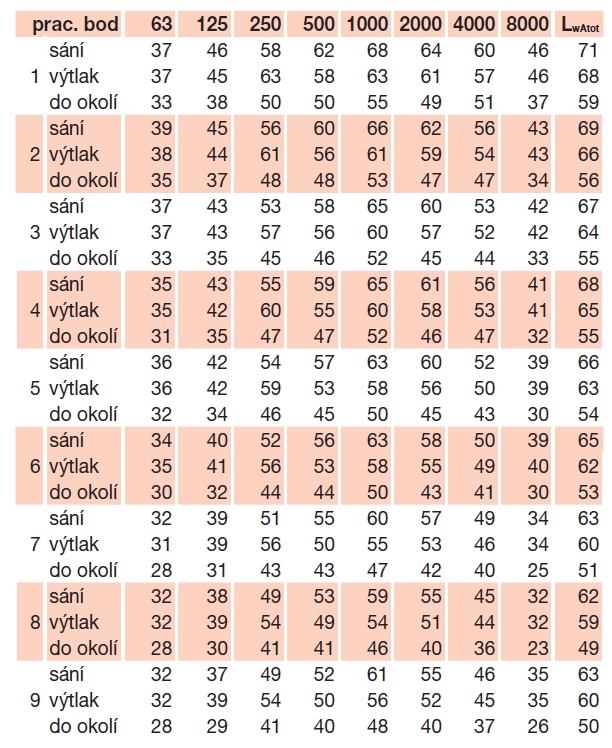 * akustický tlak měřen ve vzdálenosti 1,5 m ve volném poli při max. průtoku vzduchu