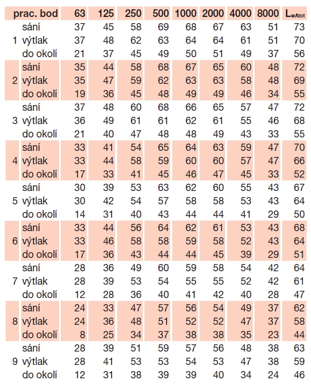 * akustický tlak měřen ve vzdálenosti 1,5 m ve volném poli při max. průtoku vzduchu