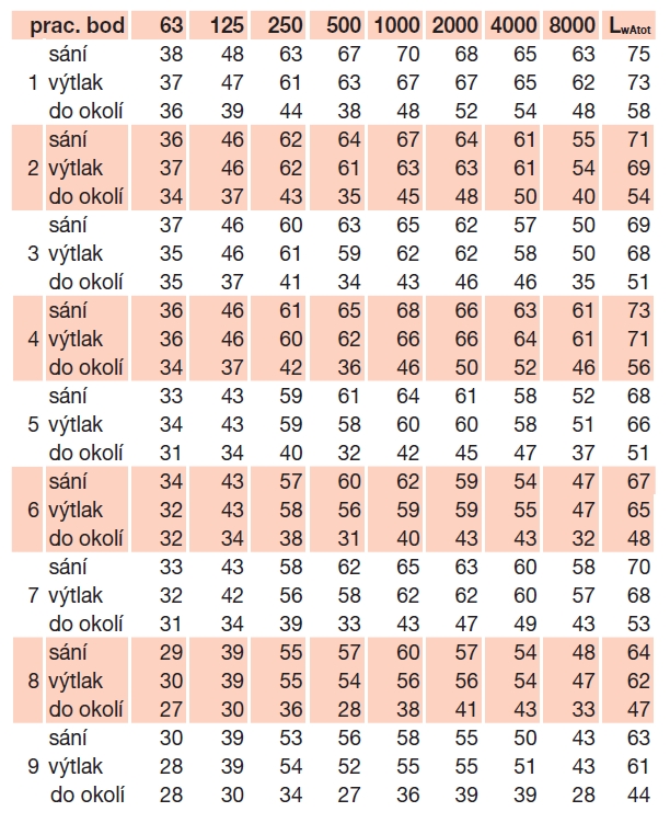 * akustický tlak měřen ve vzdálenosti 1,5 m ve volném poli při max. průtoku vzduchu