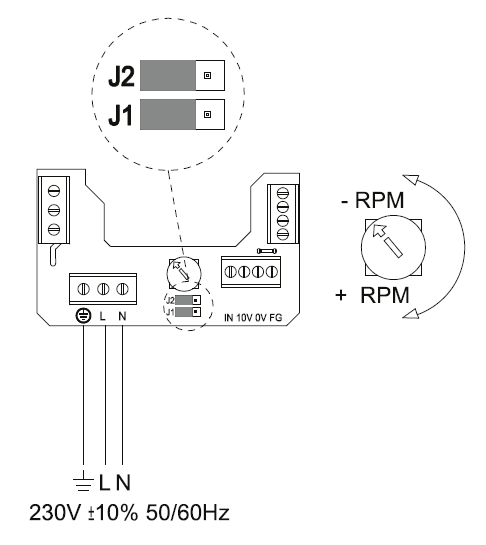 ![]() | Regulace otáček se provádí pomocí potenciometru umístěného ve svorkovnici nebo externím ovládáním REB Ecowatt. Dále analogovým řídicím signálem 0–10 V od čidla teploty, vlhkosti nebo CO2.. | |