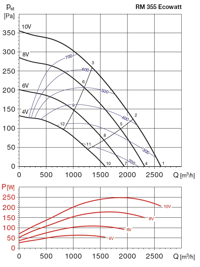 RM 355 Ecowatt IP44 economical fanDiagonální ventilátory do kruhového potrubí