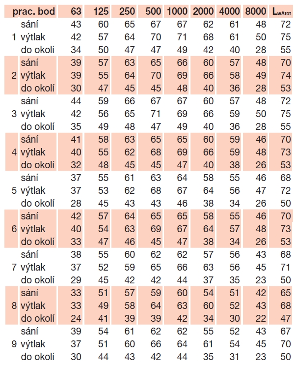 * akustický tlak měřen ve vzdálenosti 1,5 m ve volném poli při max. průtoku vzduchu