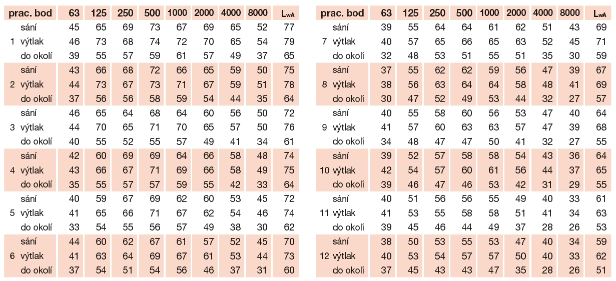 * akustický tlak je měřen ve volném poli ve vzdálenosti 3 m v pracovním bodě 2 výkonové charakteristiky (sání/do okolí/výtlak)
