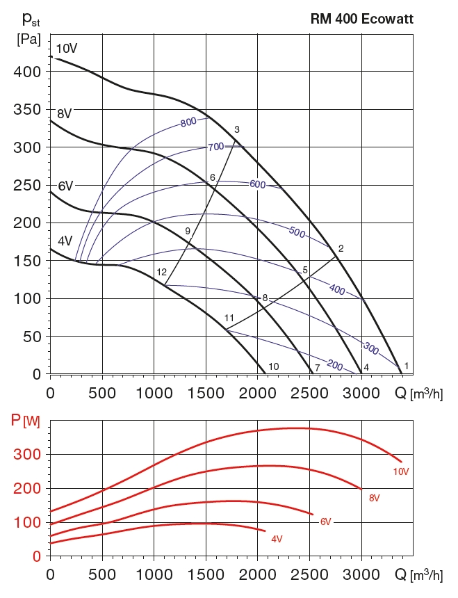 RM 400 Ecowatt IP44 economical fanDiagonální ventilátory do kruhového potrubí