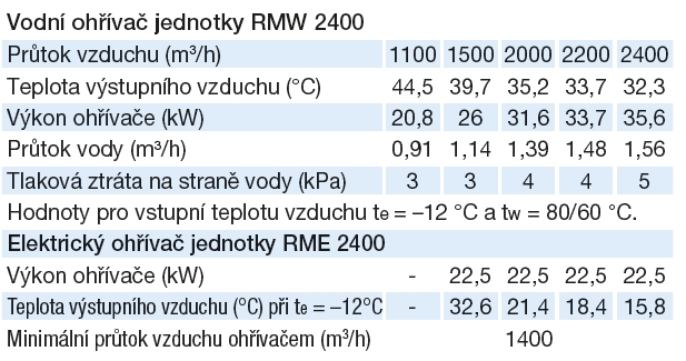 příklady provedení jednotek | tabulky parametrů ohřívačů |