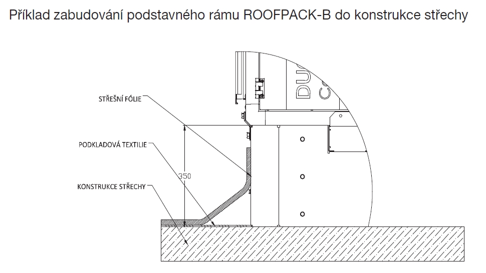 Typový klíč pro objednání | příklad zabudování podstavného rámu ROOFPACK-B do konstrukce střechy |