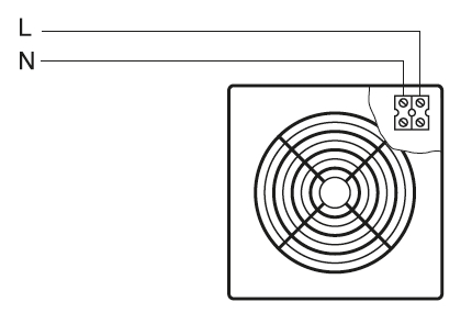 ![]() | Svorkovnice Svorkovnice je přístupná po sejmutí čelní mřížky ventilátoru. Připojení je kabelem pod omítkou. | |
