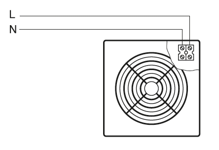 ![]() | Svorkovnice Svorkovnice je přístupná po sejmutí čelní mřížky ventilátoru. Připojení je kabelem pod omítkou. | |
