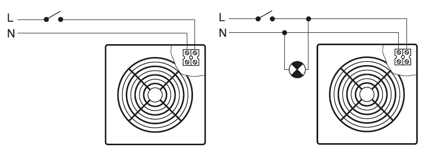 ![]() | Svorkovnice Svorkovnice je přístupná po sejmutí čelní mřížky ventilátoru. Připojení je kabelem pod omítkou. | |