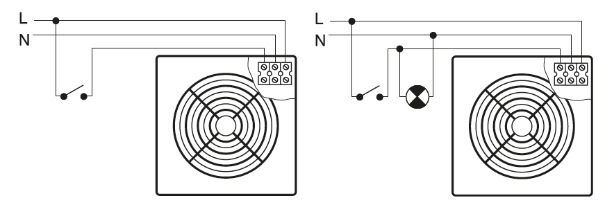 ![]() | Pokyny Ventilátory jsou vhodné pro krátké vzduchovody s nízkou tlakovou ztrátou nebo k odvětrání přímo přes stěnu. Variantu R je možné spouštět tlačítkem. | |