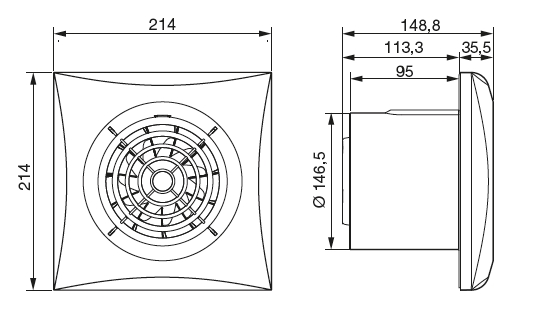![]() | Varianty C - provedení se zpětnou klapkou Z - kuličková ložiska R - nastavitelný doběh 1 až 30 minut H - hygrostat, nastavitelný doběh 1-30 minut SILVER - provedení ve stříbrné barvě PLUS - výkonější provedení | |