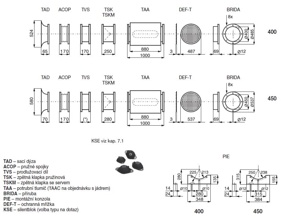 ![]() | Skříň je svařena z ocelového plechu, s přírubami do kruhového potrubí, opatřená ochranným nátěrem v šedé barvě. Provozní teplota je - 40 až +40 ˚C. Motor leží v proudu vzdušniny. | |