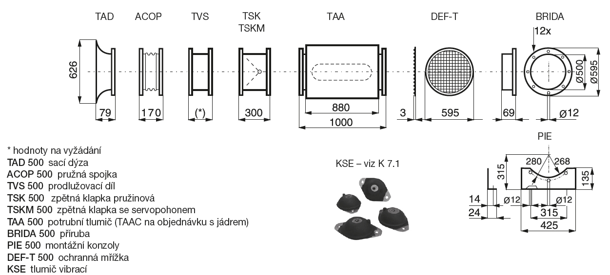 ![]() | Montáž Montáž ventilátoru v každé poloze osy motoru. Skříň nesmí přenášet mechanické namáhání z potrubních rozvodů. Je nutné použít pružné připojení k potrubí. | |