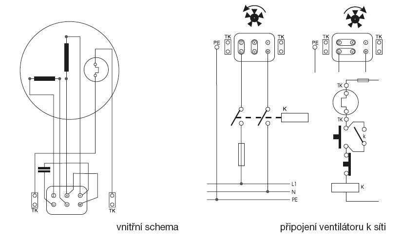 ![]() | Svorkovnice Svorkovnice je standardně z černého plastu. U jednofázového provedení obsahuje také rozběhový kondenzátor. Svorkovnice je umístěna na skříni (potrubní provedení). | |
