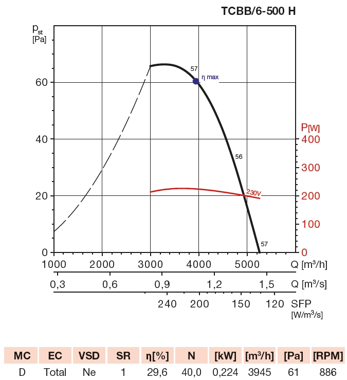 | otáčky [m-1] | průtok (0 Pa) [m3/h] | výkon [W] | napětí [V] | proud [A] | max. teplota [°C] | akustický tlak* [dB(A)] | hmotnost [kg] | regulátor |