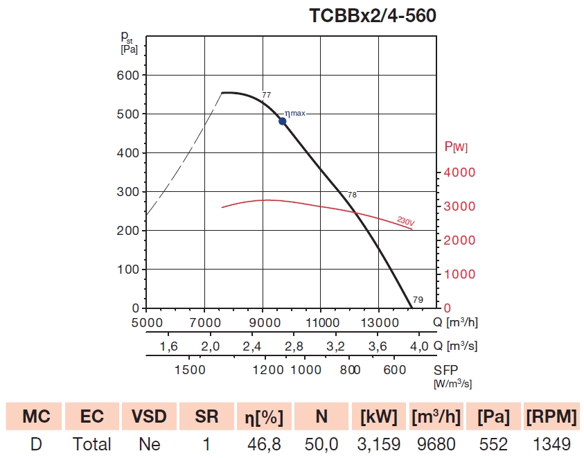TCBBx2/4-560 contrarotating cased axial fanStředotlaké axiální ventilátory potrubní IP65