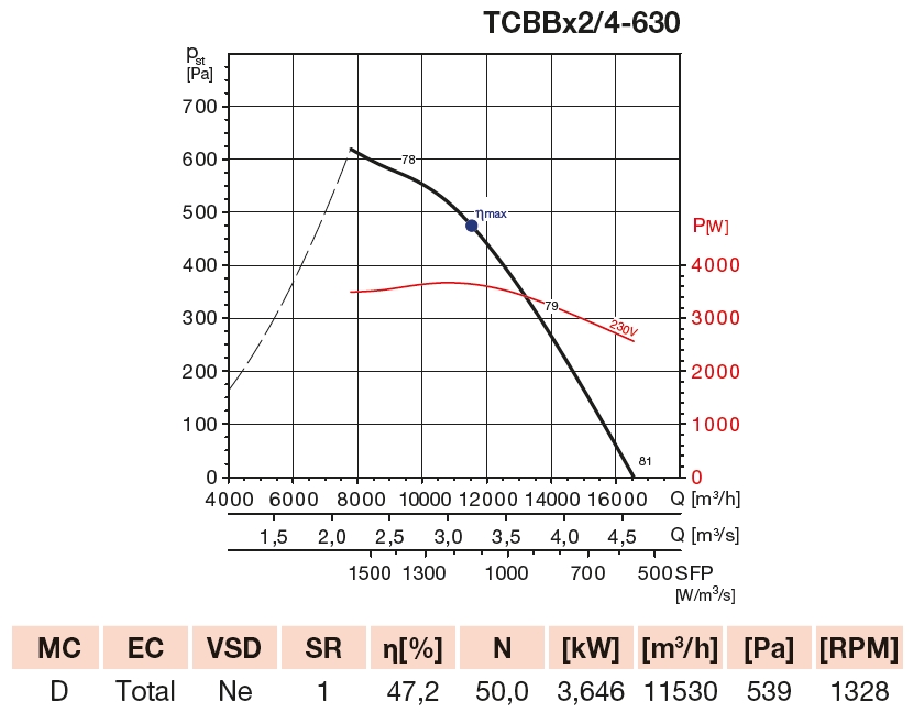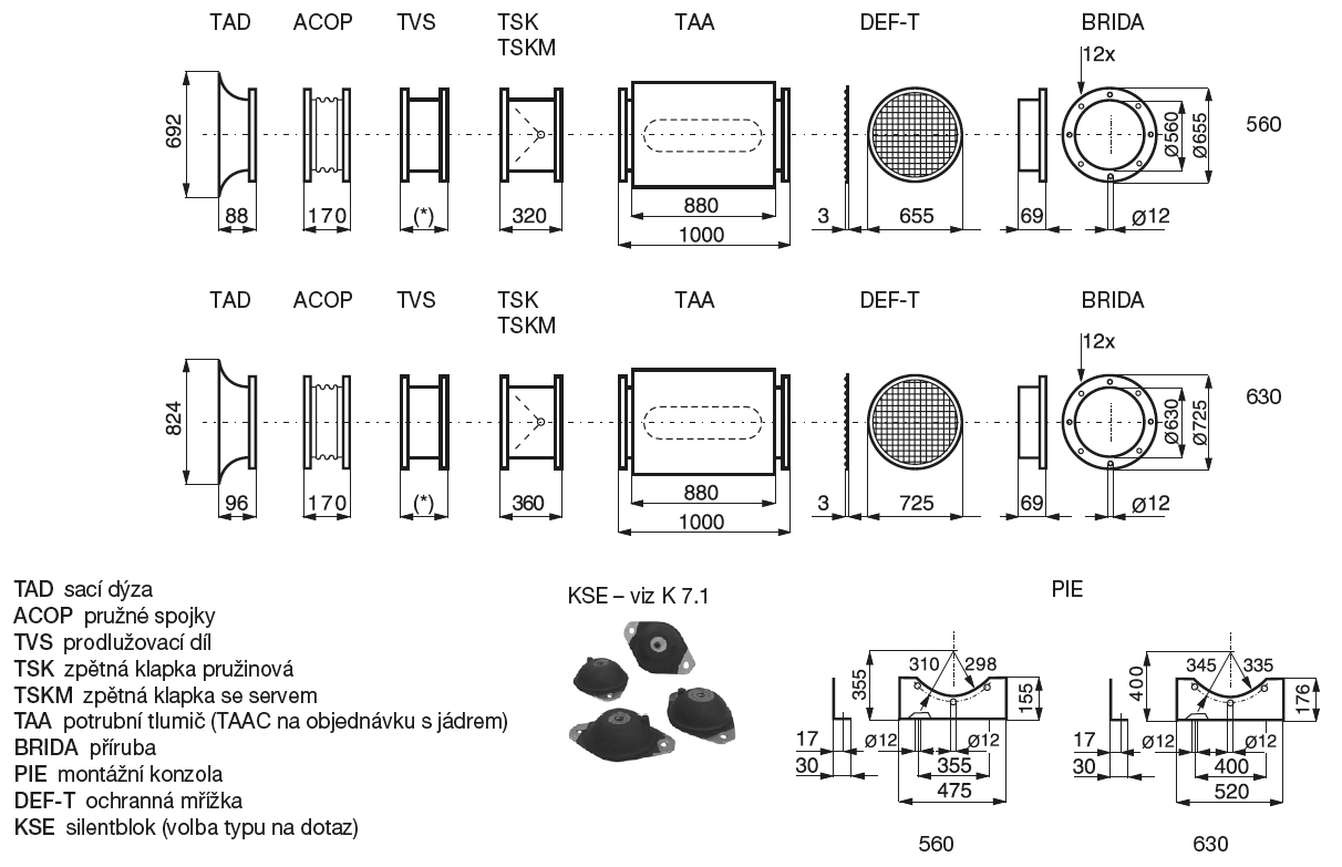 TCBBx2/4-630 contrarotating cased axial fanStředotlaké axiální ventilátory potrubní IP65