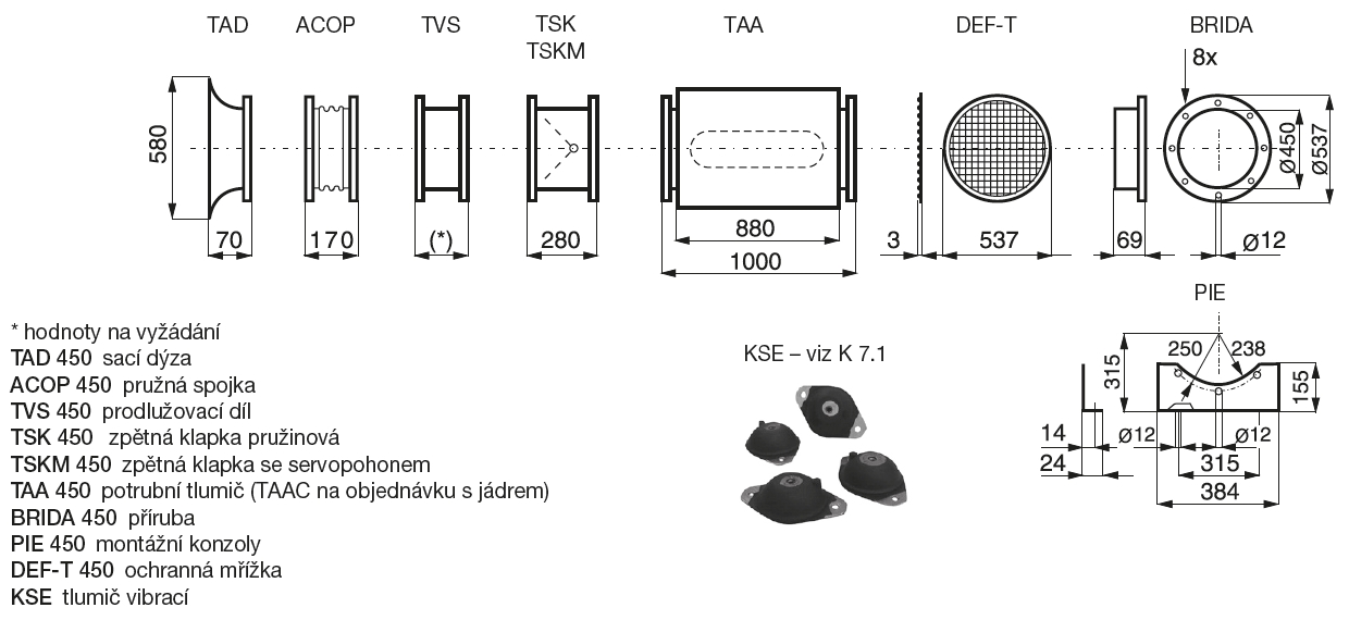 ![]() | Montáž Montáž ventilátoru v každé poloze osy motoru. Skříň nesmí přenášet mechanické namáhání z potrubních rozvodů. Je nutné použít pružné připojení k potrubí. | |