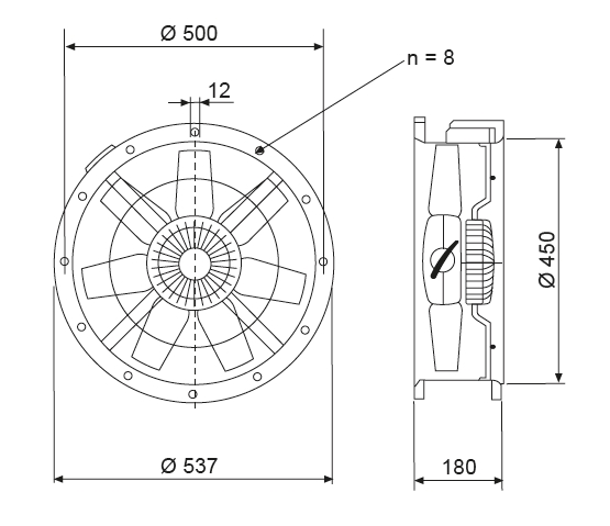 TCBT/4-450 H 230/400 V IP65 axial fanAxiální ventilátory IP65