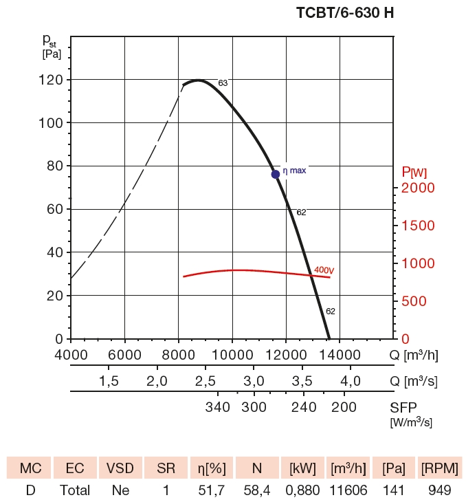 | otáčky [m-1] | průtok (0 Pa) [m3/h] | výkon [W] | napětí [V] | proud [A] | max. teplota [°C] | akustický tlak* [dB(A)] | hmotnost [kg] | regulátor |