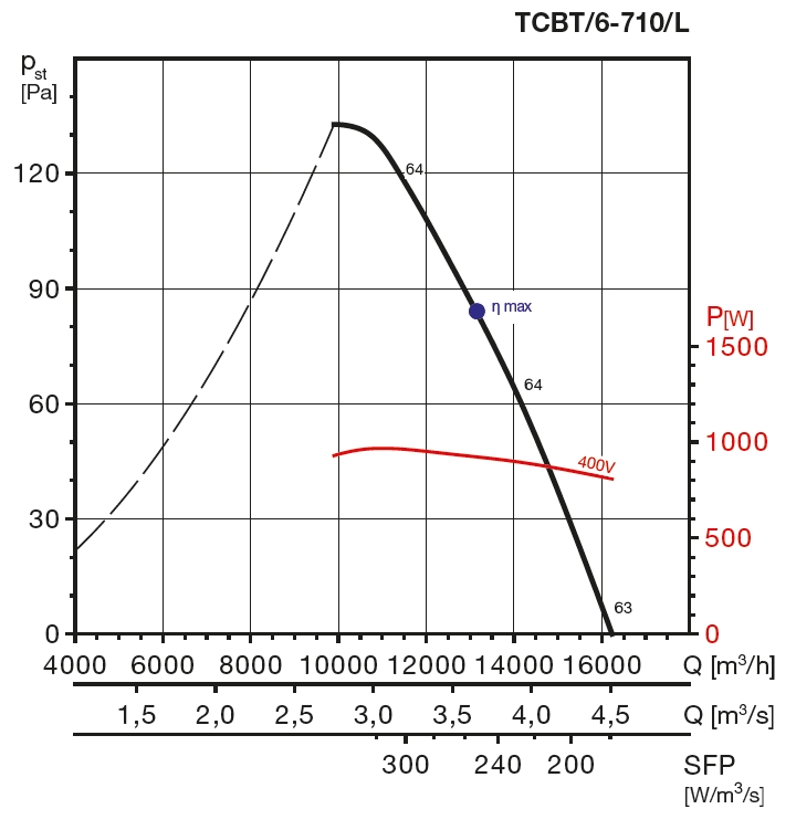 | otáčky [min-1] | průtok (0 Pa) [m3/h] | příkon [kW] | napětí [V] | proud [A] | max. teplota [°C] | akustický tlak [dB(A)] | hmotnost [kg] | Ia/In | te [s] |