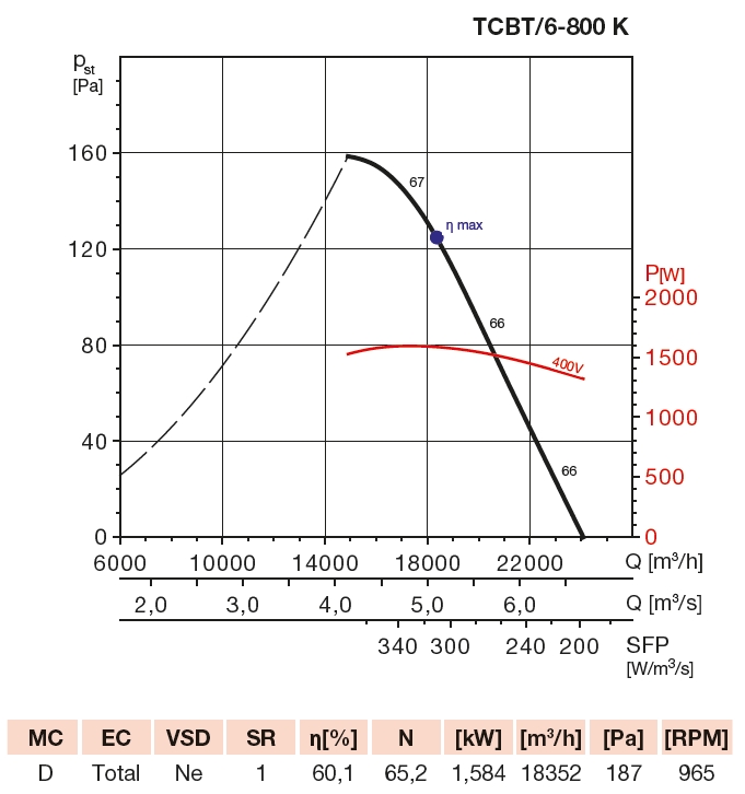 | otáčky [m-1] | průtok (0 Pa) [m3/h] | výkon [W] | napětí [V] | proud [A] | max. teplota [°C] | akustický tlak* [dB(A)] | hmotnost [kg] | regulátor |