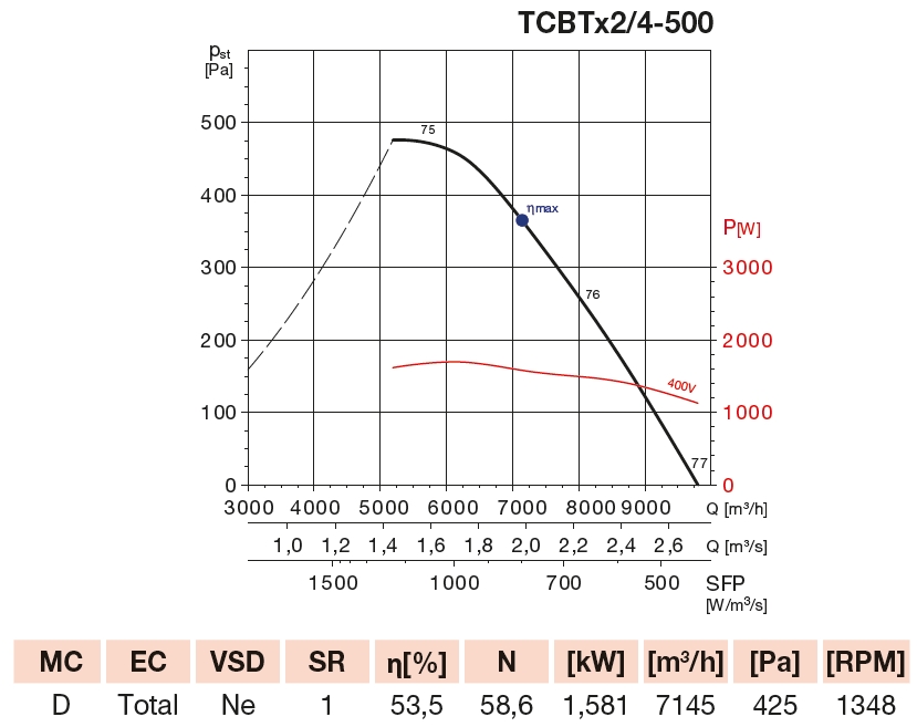 | výtlak - 9000 m3/h | 65 | 76 | 87 | 88 | 90 | 84 | 77 | 70 | 94 |