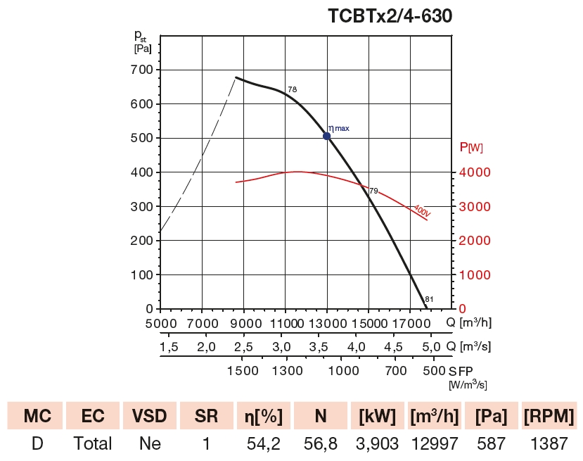 TCBTx2/4-630 400 V contrarotating cased axial fanStředotlaké axiální ventilátory potrubní IP65