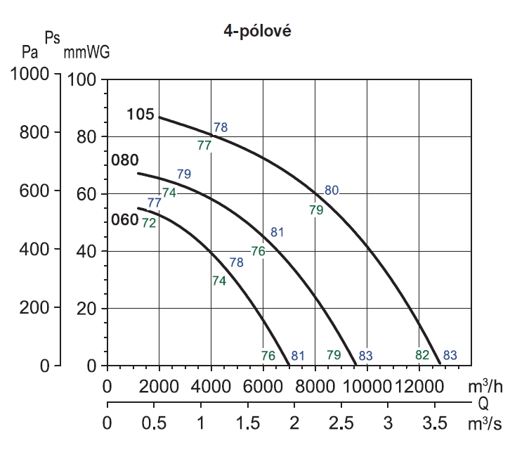 | 4000 m3/h - výtlak | 61 | 76 | 81 | 85 | 84 | 82 | 79 | 75 |