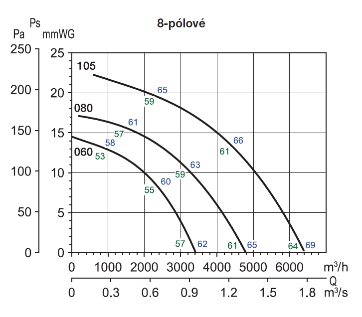 | 3000 m3/h - sání | 49 | 59 | 60 | 61 | 61 | 61 | 60 | 57 |