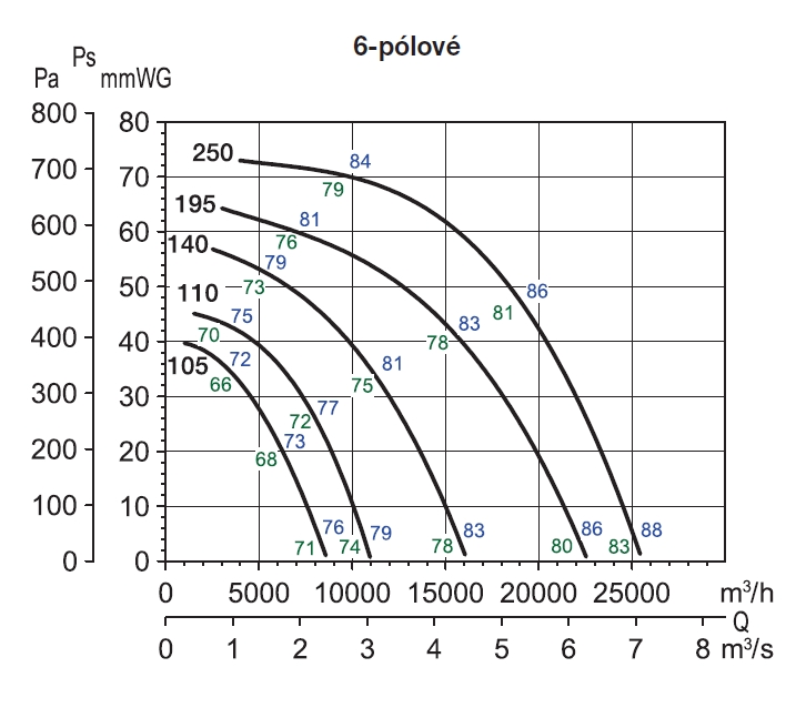 | 10000 m3/h - výtlak | 73 | 83 | 87 | 90 | 90 | 88 | 84 | 79 |