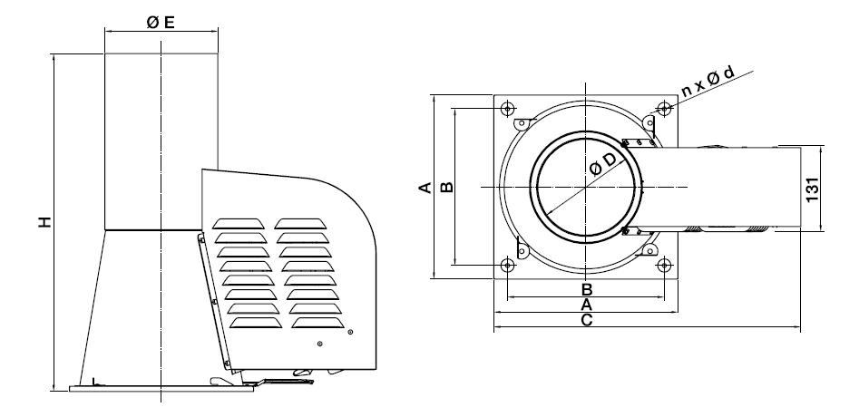 ![]() | Skříň Skříň je z nerezového plechu. Na skříni je připevněna nerezová čtyřhranná příruba pro připojení na komínový průduch. Ventilátor je určen pro instalaci do venkovního prostředí. | |