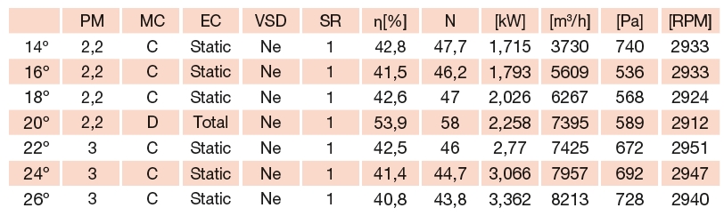 ![]() | Motor Motor je asynchronní s kotvou nakrátko. Motory jsou s izolací třídy F a pracovní teplotou -20 až +40 °C. Krytí IP55. Třída účinnosti IE3. | |