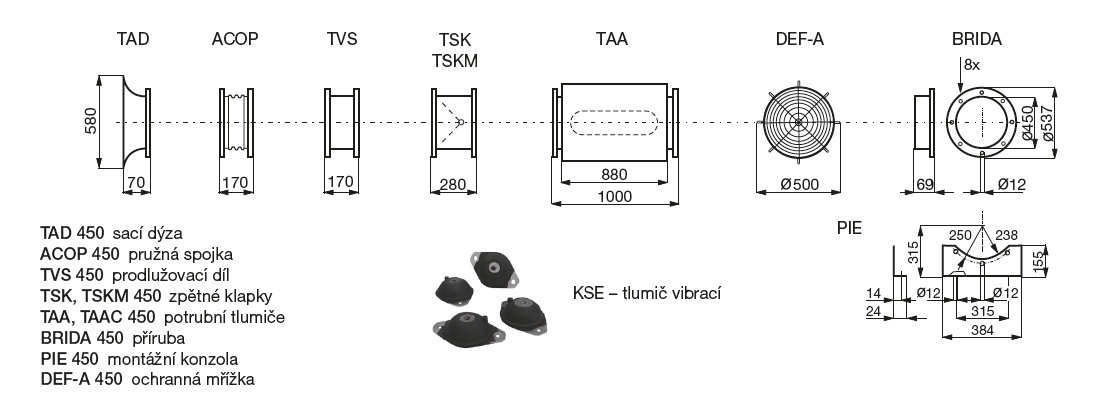 ![]() | Skříň Skříň je v krátkém nebo dlouhém provedení, je svařena z ocelového plechu odolného proti korozi s žárově pozinkovaným povrchem, s přírubami do kruhového potrubí. U dlouhé verze na přání servisní dvířka. | |