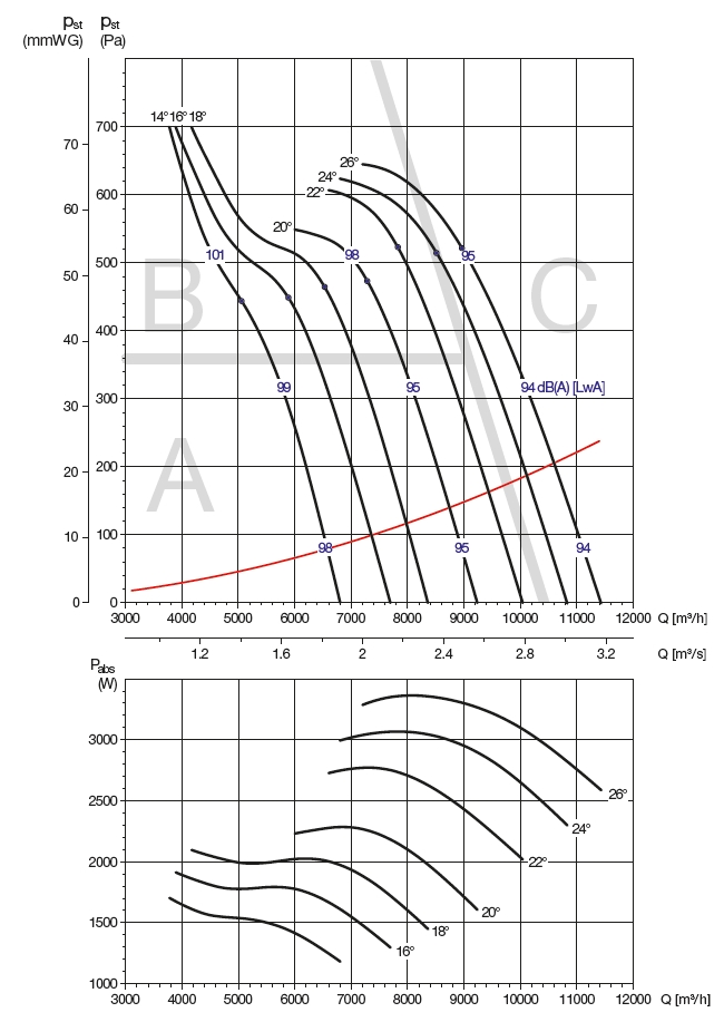 ![]() | Hluk Hluk emitovaný ventilátorem je uveden v charakteristikách ventilátoru. Odečtením korekcí (v tabulce u jednotlivých charakteristik) od hodnoty akustického výkonu LwAtot [dB(A)] uvedené ve výkonových charakteristikách ventilátoru v jednotlivých zónách se získá hodnota akustického výkonu LwA [dB(A)] ve středu oktávových pásem. | |