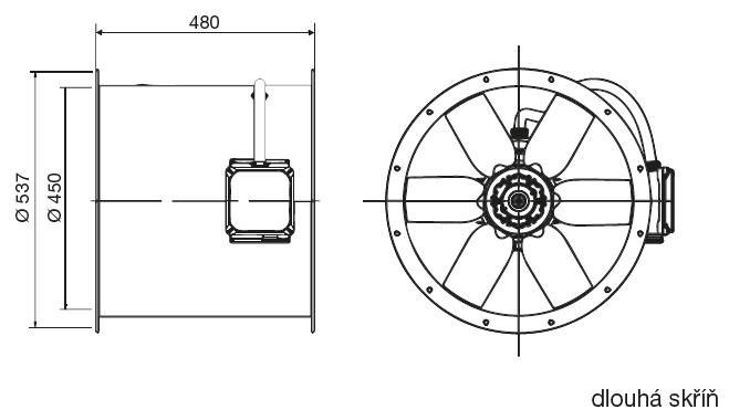 | otáčky [min-1] | počet listů | příkon [kW] | napětí [V] | proud [A] | průměr připojení [mm] | hmotnost krátká skříň [kg] | hmotnost dlouhá skříň [kg] |