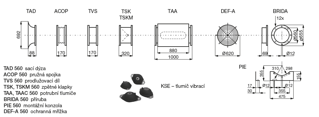 ![]() | Skříň Skříň je v krátkém nebo dlouhém provedení, je svařena z ocelového plechu odolného proti korozi s žárově pozinkovaným povrchem, s přírubami do kruhového potrubí. U dlouhé verze na přání servisní dvířka. | |