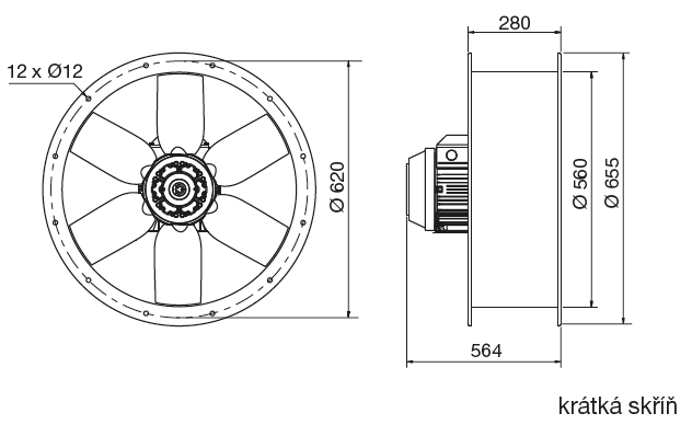 TGT/2-560-6/-5,5 IP55 axial fanAxiální ventilátory s nastavitelnými lopatkami IP55