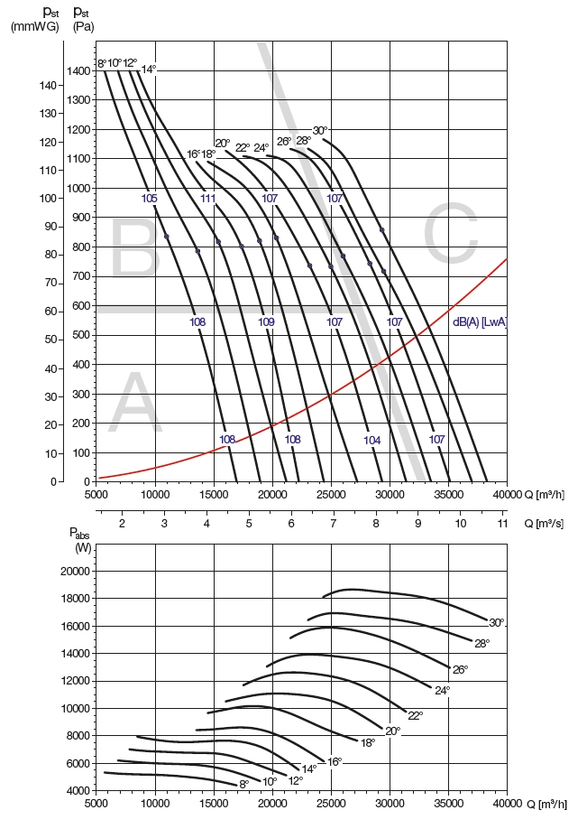 ![]() | Hluk Hluk emitovaný ventilátorem je uveden v charakteristikách ventilátoru. Odečtením korekcí (v tabulce u jednotlivých charakteristik) od hodnoty akustického výkonu LwAtot [dB(A)] uvedené ve výkonových charakteristikách ventilátoru v jednotlivých zónách se získá hodnota akustického výkonu LwA [dB(A)] ve středu oktávových pásem. | |