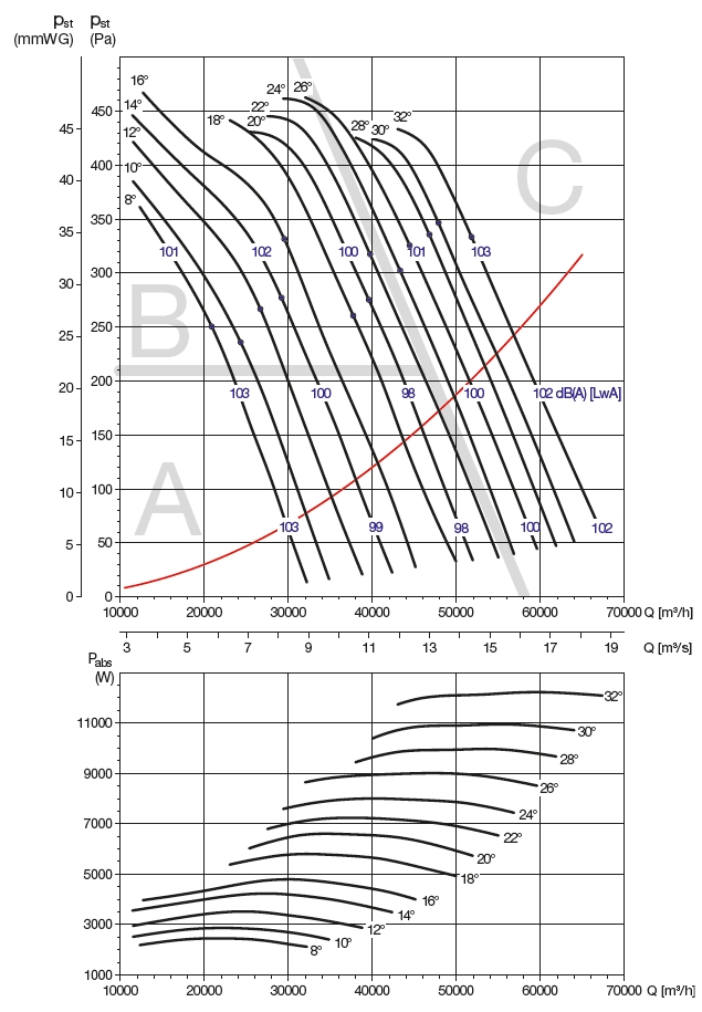![]() | Hluk Hluk emitovaný ventilátorem je uveden v charakteristikách ventilátoru. Odečtením korekcí (v tabulce u jednotlivých charakteristik) od hodnoty akustického výkonu LwAtot [dB(A)] uvedené ve výkonových charakteristikách ventilátoru v jednotlivých zónách se získá hodnota akustického výkonu LwA [dB(A)] ve středu oktávových pásem. | |