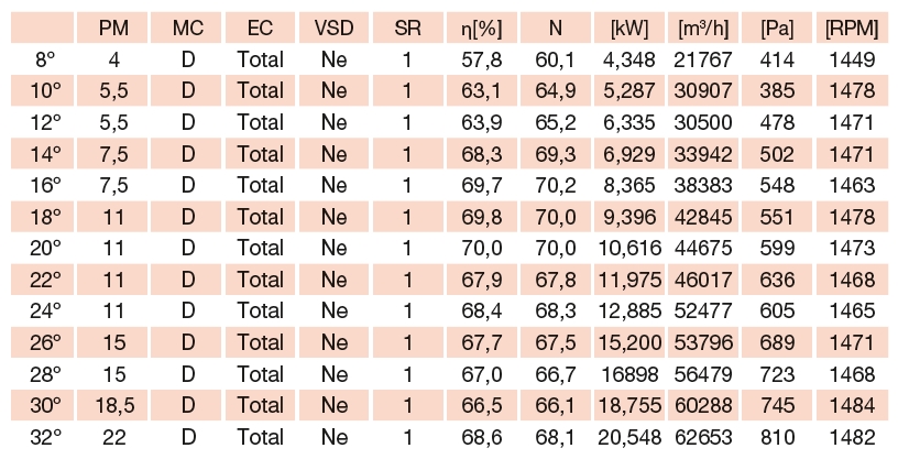 ![]() | Motor Motor je asynchronní s kotvou nakrátko. Motory jsou s izolací třídy F a pracovní teplotou -20 až +40 °C. Krytí IP55. Třída účinnosti IE3. | |