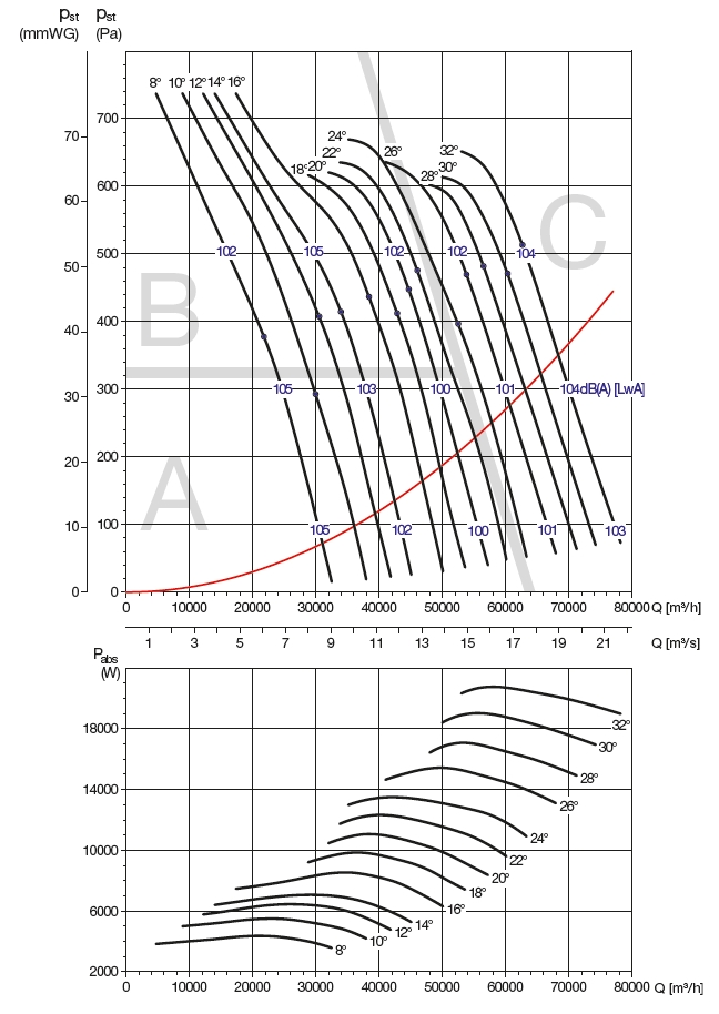 ![]() | Oběžné kolo Oběžné kolo je vyrobeno z Al slitiny a je staticky i dynamicky vyváženo. Nastavení úhlu listu oběžného kola je provedeno výrobcem (8º – 32º). Počet lopatek 3, 6 nebo 9. | |