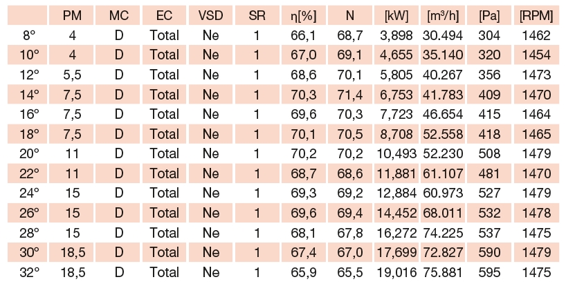 ![]() | Motor Motor je asynchronní s kotvou nakrátko. Motory jsou s izolací třídy F a pracovní teplotou -20 až +40 °C. Krytí IP55. Třída účinnosti IE3. | |