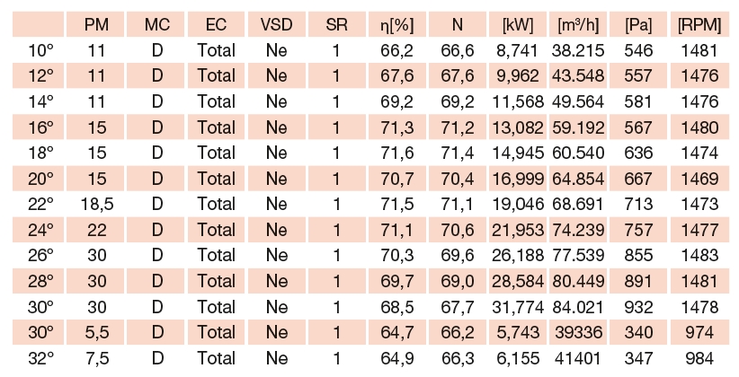 | otáčky [min-1] | počet listů | příkon [kW] | napětí [V] | proud [A] | průměr připojení [mm] | hmotnost krátká skříň [kg] | hmotnost dlouhá skříň [kg] |
