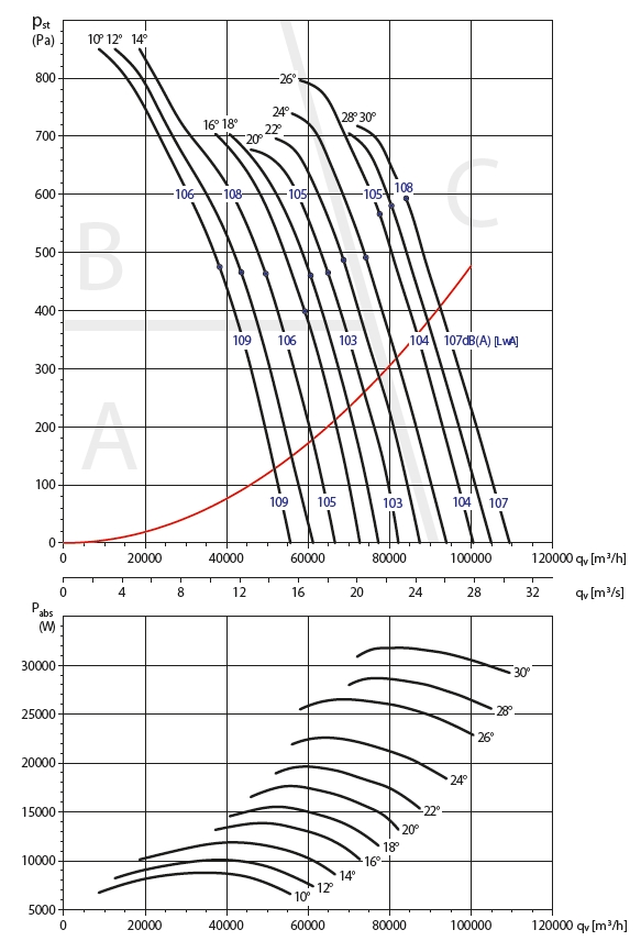 ![]() | Hluk Hluk emitovaný ventilátorem je uveden v charakteristikách ventilátoru. Odečtením korekcí (v tabulce u jednotlivých charakteristik) od hodnoty akustického výkonu LwAtot [dB(A)] uvedené ve výkonových charakteristikách ventilátoru v jednotlivých zónách se získá hodnota akustického výkonu LwA [dB(A)] ve středu oktávových pásem. | |