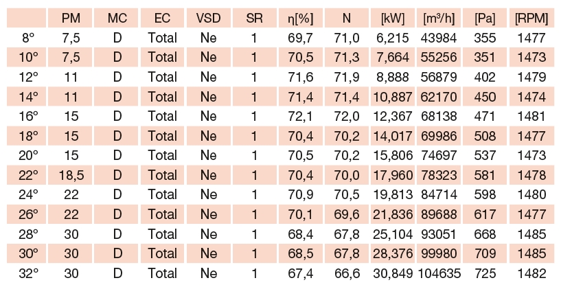 ![]() | Motor Motor je asynchronní s kotvou nakrátko. Motory jsou s izolací třídy F a pracovní teplotou -20 až +40 °C. Krytí IP55. Třída účinnosti IE3. | |