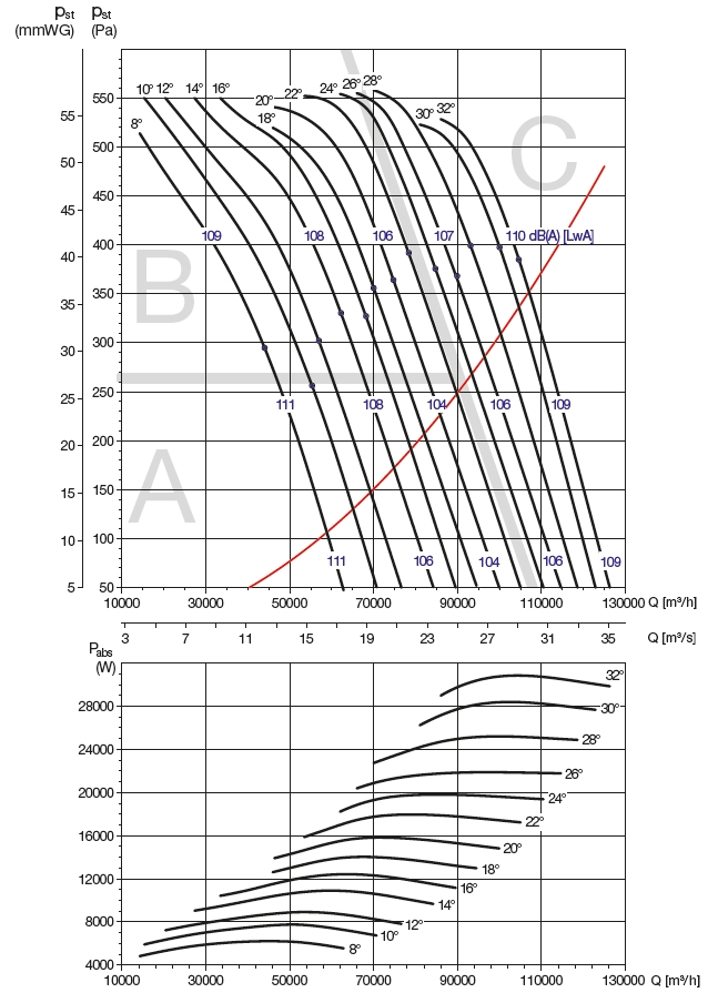 ![]() | Hluk Hluk emitovaný ventilátorem je uveden v charakteristikách ventilátoru. Odečtením korekcí (v tabulce u jednotlivých charakteristik) od hodnoty akustického výkonu LwAtot [dB(A)] uvedené ve výkonových charakteristikách ventilátoru v jednotlivých zónách se získá hodnota akustického výkonu LwA [dB(A)] ve středu oktávových pásem. | |