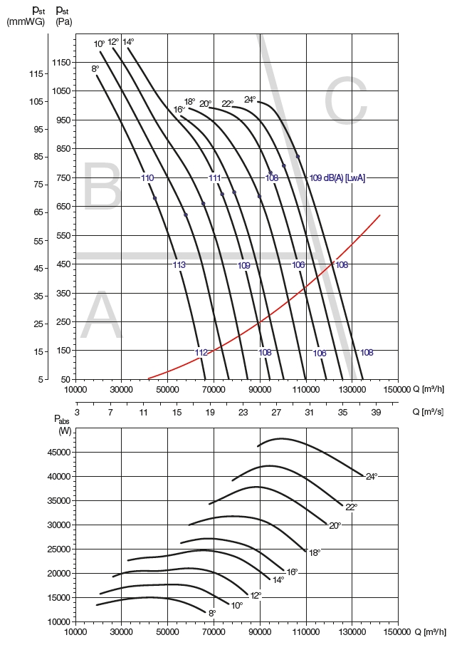 ![]() | Hluk Hluk emitovaný ventilátorem je uveden v charakteristikách ventilátoru. Odečtením korekcí (v tabulce u jednotlivých charakteristik) od hodnoty akustického výkonu LwAtot [dB(A)] uvedené ve výkonových charakteristikách ventilátoru v jednotlivých zónách se získá hodnota akustického výkonu LwA [dB(A)] ve středu oktávových pásem. | |