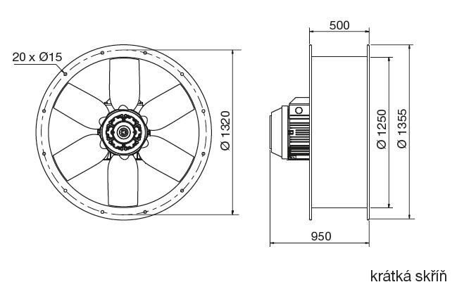 | otáčky [min-1] | počet listů | příkon [kW] | napětí [V] | proud [A] | průměr připojení [mm] | hmotnost krátká skříň [kg] | hmotnost dlouhá skříň [kg] |