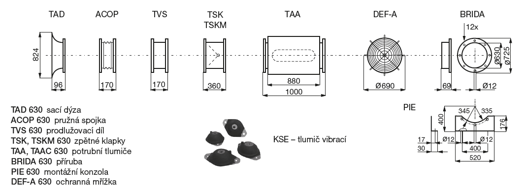TGT/4-630-6/-2,2 IP55 axial fanAxiální ventilátory s nastavitelnými lopatkami IP55